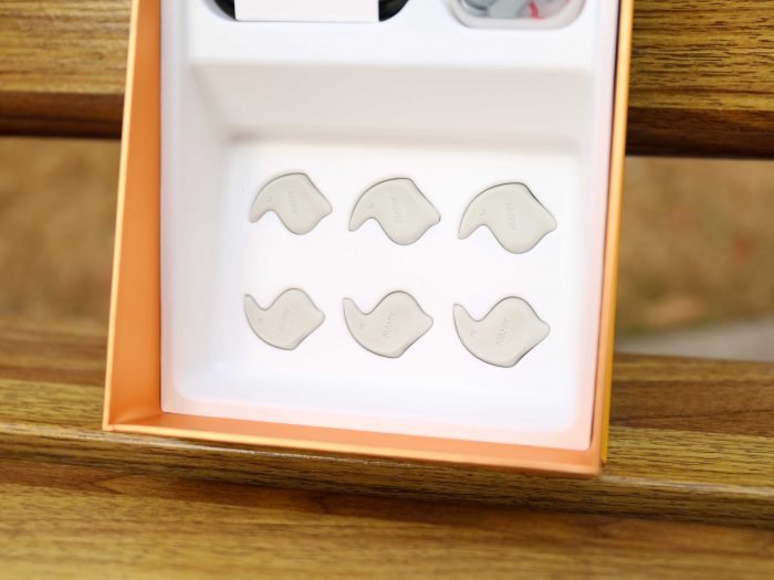 耳机的表面依然还是采用了高等级硅胶工艺包裹,柔和亲肤不怕水,手感舒适没有任何异味,佩戴在耳朵上还能起到防滑的作用。