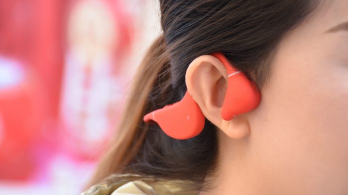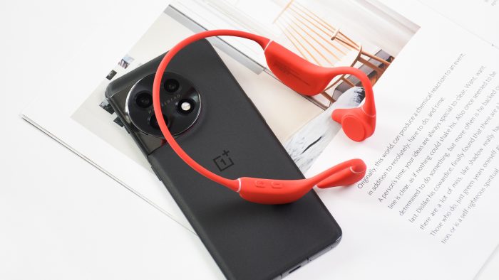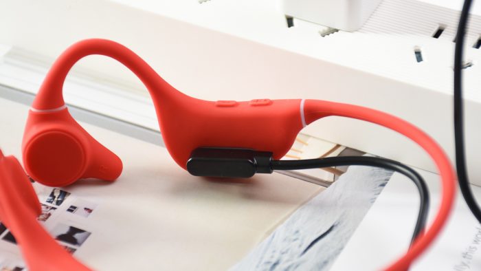 外观方面,Runner Pro 4基本延续了上一代Runner Pro 3的造型,包括配色也是红色和深灰色。骨传导耳机品类发展至今,已经形成了近乎一致的形态,各家厂商也无非是在一些细节之处加以修改,提升佩戴舒适度的同时也起到增加品牌辨识度的作用。