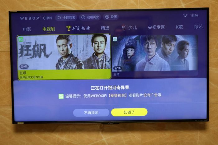 连接上网络之后,首页立马就刷出来了最新的影视内容,泰捷WE60pro在系统方面是真的是非常简洁,而且没有任何广告,老人孩子上手都很容易。除了第一次开机会加载一会,之后每次都是秒开,这点真的超级赞!