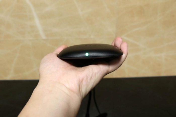 首先看下这款电视盒子的外观,小巧圆润大小放在掌心刚好,摆在家里也相当养眼而且占用不了多少桌面空间。