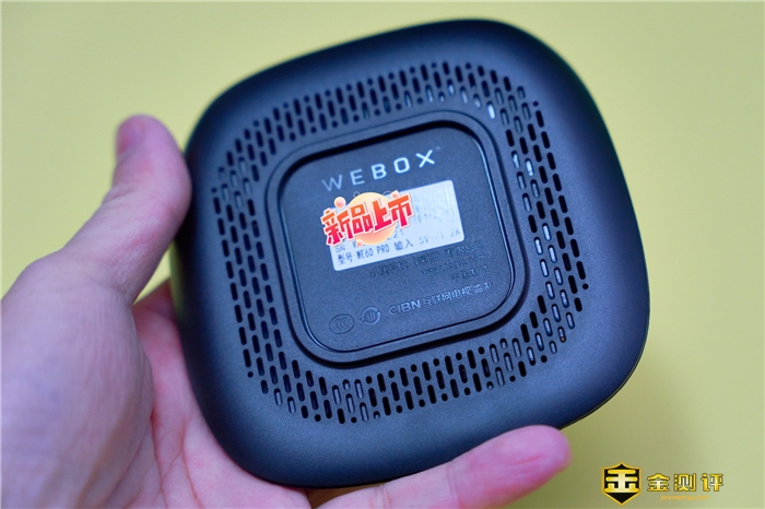 WE60 Pro一改普通机顶盒方盒外观,而是把主机“打磨”成了鹅卵石片的样子,最厚处约2cm。