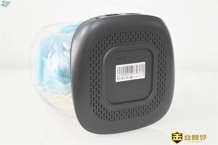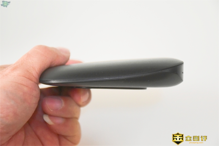 泰捷WE60 Pro盒子的外观并没有太多的改变,手感轻了不少,黑色鹅卵石形状,细腻的磨砂手感是标配;它的所有散热都集中于底部,大大小小有100多个孔洞,底部没有防滑设计,也没有安装螺丝;盒子的接口布置于机身的后面,依次是电源接口、USB3.0、重置孔、HDMI2.0和AV口
