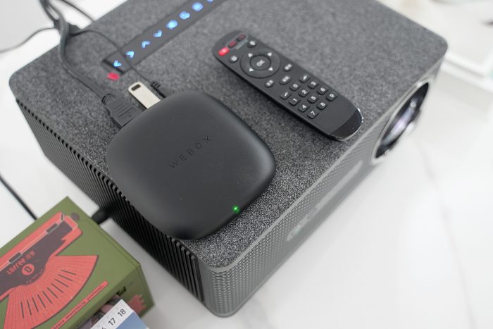 泰捷WE60Pro电视盒子使用简单,只需要将盒子通过HDMI高清线连接到电视、投影设备或显示器即可,首次进入系统的时候根据提示需要键配对遥控器,然后连接家里的网络即可直接开启使用体验。相比之前投影自带的系统,连接泰捷WE60Pro电视盒子后的系统界面给人感觉更清爽、也更友好。