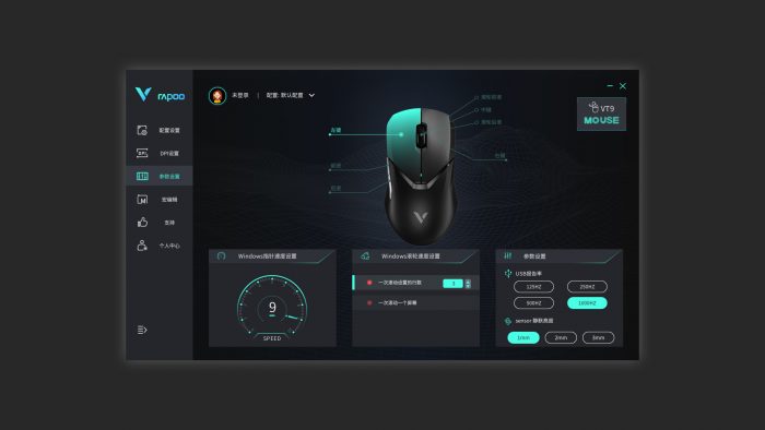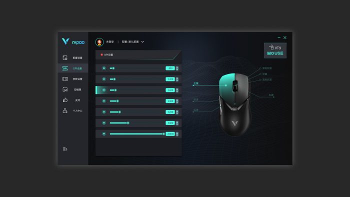唯一有些不太理想的就是VT9没有侧边的“火力狙击”键,在瞄准射击的时候无法快速降低DPI提升准确性,建议通过驱动程序将两枚侧边键改为DPI调节按键。