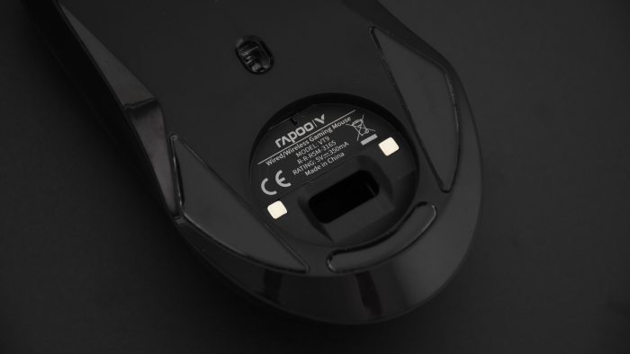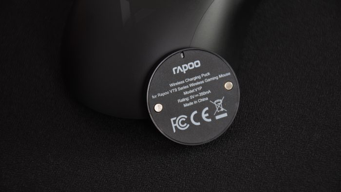 利用附送的伞绳数据线就可以给鼠标回血充电,完整充满大约需要3个小时。另外,搭配雷柏V1P无线充电模块,还可以将它放到Qi协议的无线充电器上充电。