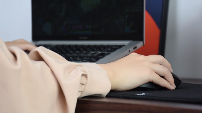 连接方面,它同时支持有线和无线2.4Ghz两种连接方式,可以根据实际的使用场景灵活选择。通常我搭配台式电脑会用有线连接,信号传输更稳定,延迟低,还不用操心续航的问题。偶尔用笔记本的话,在鼠标一端拔掉现在,就会自动切换到无线连接模式,接收器插在笔记本上就OK。