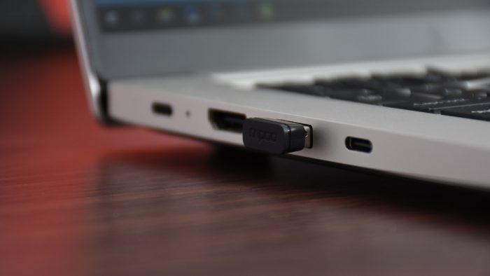 当然,如果所处的环境干扰源实在太多,也可以用数据线连接转接器,将USB接收器移动到桌面上,距离鼠标更紧,减少干扰的情况。