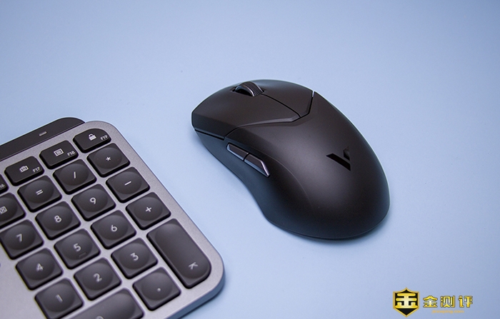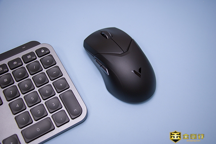 外形设计上可以看得出雷柏还是很用心的,不仅使用了传统一些的对称式造型设计,无论左右手都能轻松驾驭,鼠标主键也使用了分体式设计,而且还设计出V型花边,与雷柏的V系列相呼应。