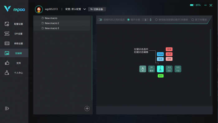 雷柏新系列的产品都可以通过这个驱动程序进行配置,并且可以通过账户登陆进行方案的云存储。