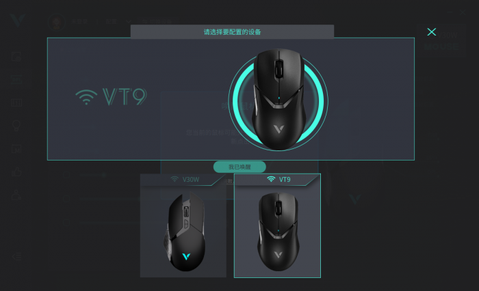 由于我之前绑定过V30W这款鼠标,而VT9则是在安装驱动的这台电脑上使用过,驱动安装成功以后直接跳出了VT9的选项。