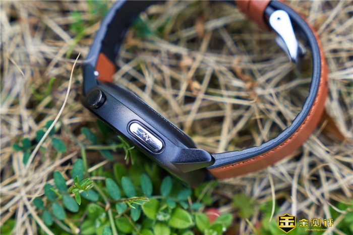 手表表盘一侧是黑色的按钮式表冠,长按开关机,短按亮息屏。