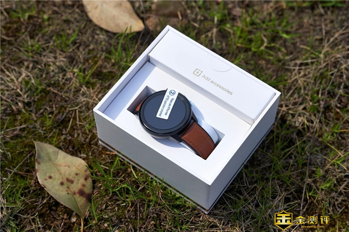 开箱可见手表已端坐其中。表盘、表耳、传感器上均贴有保护膜。