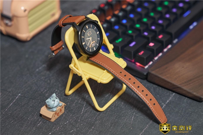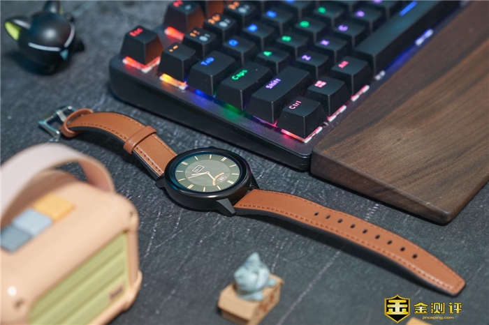 圆形表盘是经典样式,皮带棕的配色沉稳。手表默认自带8种表盘样式,通过App更有海量表盘可供选择,也提供了自定义选项供用户自由设计,多种百搭各种场合、衣着。