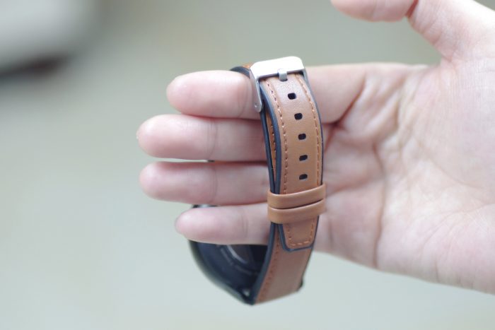 我手上这款表带为棕色,正面是皮质材质的,而背面则是硅胶材质的,戴着还是很舒适的,并且表带为可拆卸式设计,可以根据自己喜好更换不同的表带颜色。