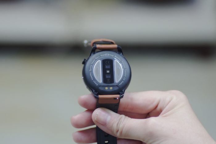 背面是传感器和金属极片,内置进口监测芯片,支持测量体温、血压、血糖等数据。加上磁吸式充电口的设计,手表的防水等级达到了IP68级,日常使用无惧雨水泼溅,洗手时都可以正常佩戴,免去摘表的麻烦。
