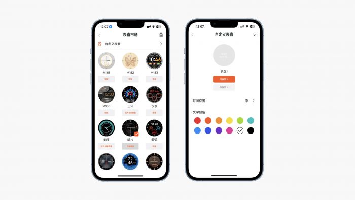 而在日常使用中,dido E55S Pro Max也有一些非常实用的小功能。比如在表盘市场提供有多种表盘风格可以下载使用,大概浏览了下,风格样式比较丰富。当然也可以选择一张照片作为表盘背景,并且可以调整时间字样的位置和颜色。