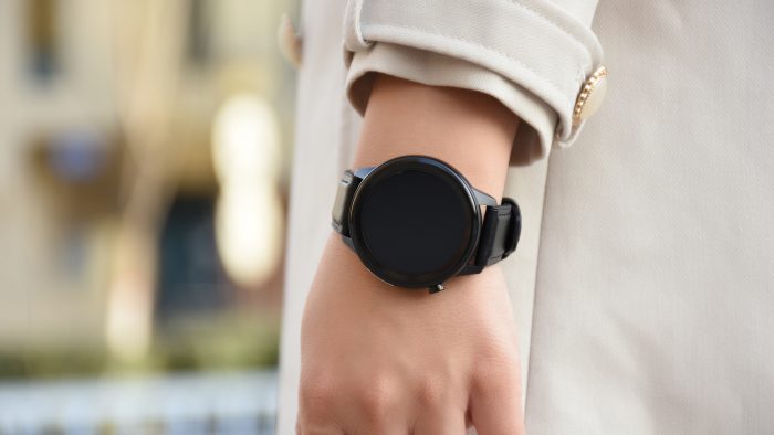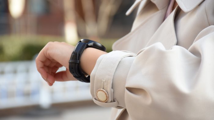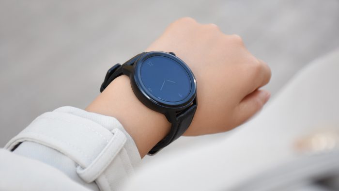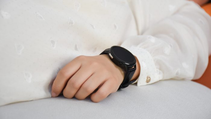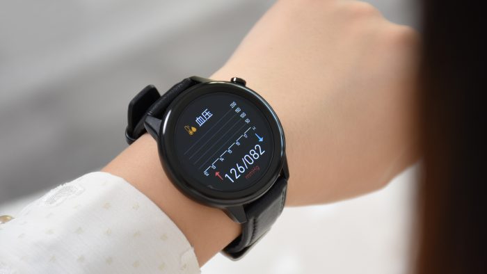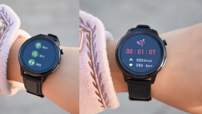 这款手表采用经典的圆形表盘设计,黑色雾面质感的边框稍稍凸起于屏幕,相比全屏覆盖、弧度边缘过度的设计显得内敛很多,更适合老年用户和着装成熟的用户佩戴,出入各种场合都没有违和感。