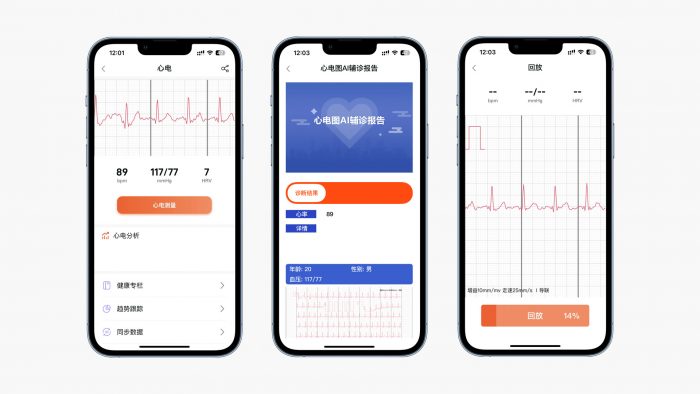 心电图检测是dido首创,采用自研的Dido Fitecg 2.0技术,基于智能脉搏技术医疗硬件标准,通过ECG测量原理采集心脏生物电信号,检测时将手指按在手表侧边的电极模块上,30秒左右就能给出心电图测试数据,可以做到32种心电图疾病筛查,并给出具有参考性的辅诊报告。心脏是人体的核心器官,随时全面的了解心脏健康,能够及时发现一些潜在的疾病,提早防御或治疗。