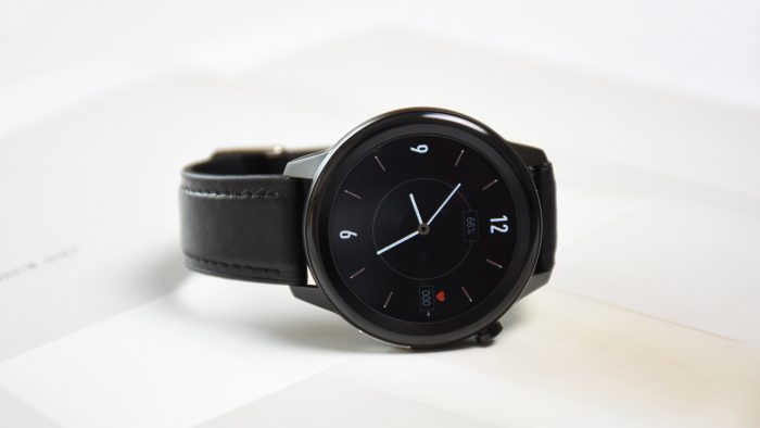 表盘是一块1.39英寸的圆形屏幕,分辨率是360*360像素,细腻度还不错,支持触控操作,手表的主要交互操作都要依靠这块屏幕来完成。默认的表盘是类似传统手表的图案,数字指针简约大方,两处数字分别表示剩余电量和心率数据。