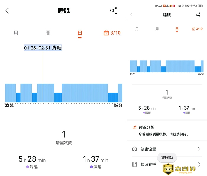 手表采用DIDO SLEEPADVA 2.0深度睡眠分析技术,每秒40次皮肤脉冲监测,精准度提升28%。手表端可直接看睡眠时长及睡眠质量星级,同步APP后可直观看到清醒、浅睡眠、深度睡眠四个阶段数据;点击睡眠质量评分,还可提供睡眠优化指导,帮助用户改善睡眠。