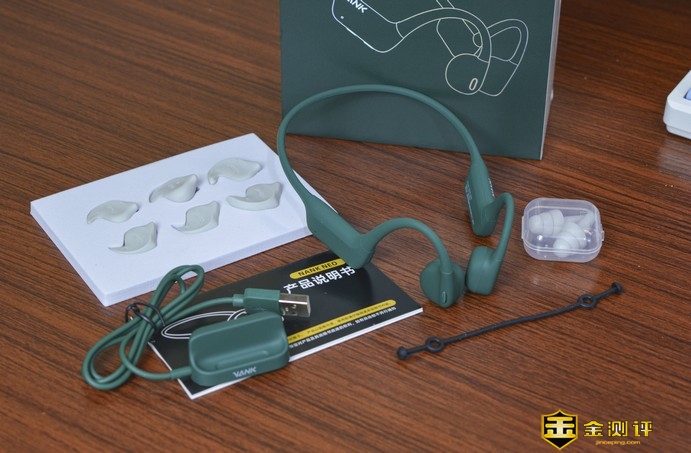 南卡NEO某东当前活动价13988,属于高端骨传导耳机定位。配色新增独有的瓦松绿配色也是很有辨识度了。包装方面很是紧凑,配件除了磁吸式充电器、三幅音质增强耳塞、使用说明书外还附赠了一副用于静音沉浸式佩戴的硅胶隔音耳塞。