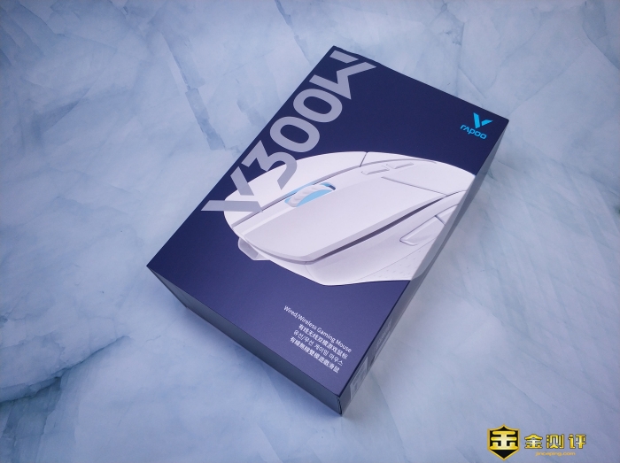 雷柏V300W游戏鼠标的包装盒采用了一贯的设计风格,外观精致简约,正面鼠标渲染图和型号都比较醒目,旁边有相应的品牌logo和名称。