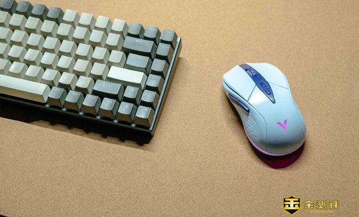 按键部分,雷柏V300W使用了2000万次点击寿命的欧姆龙微动,按压表现十分清脆,触发阻力适中,操作特别灵敏。实际使用中,因为按键面积够大,高频操作时很容易掌控。