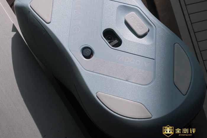 鼠标的底部还有接收器收纳仓,方便收纳携带。