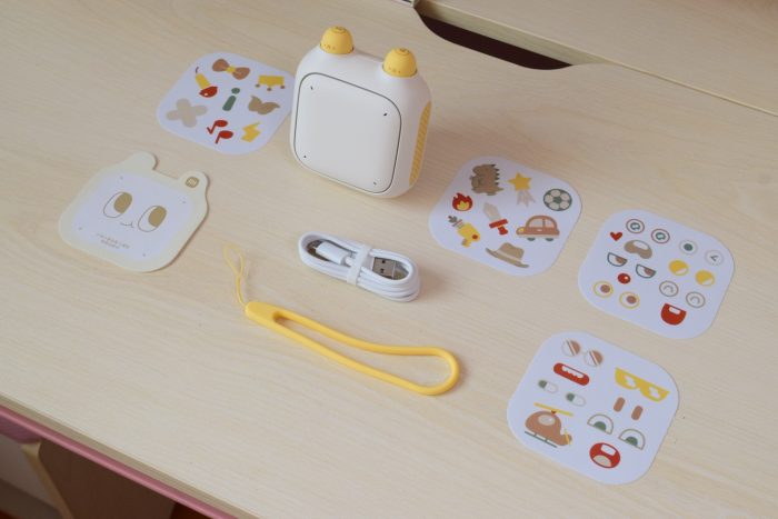 再来看看盒中都有些什么?除了音箱主机,还有数据线、挂绳、表情贴纸*4和使用说明书,配件还算比较丰富。