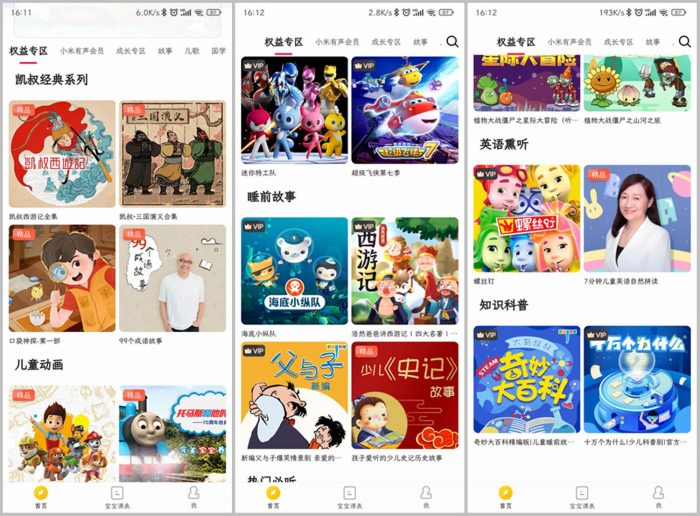 小米小爱音箱儿童版的系统界面经过了重新设计,其中首页中的功能选项和内容资源都专门针对孩子进行了优化,更加适合孩子使用。