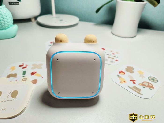 使用的时候音箱会亮起蓝色的圈圈灯,闪烁如同小眼睛,声光都经过儿童玩具声光认证,低龄儿童使用也很安全。