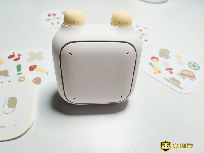 它是小米小爱儿童音箱,四四方方的外观,白色拼黄色的蛋白蛋黄视觉设计,可可爱爱让孩子们爱不释手。
