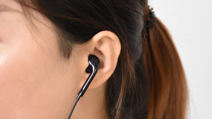 连接耳塞的线材从仓体内侧延伸出来,20公分左右的长度足够日常使用,佩戴以后左右扭头都没有问题。耳塞属于经典的半入耳式造型,相比入耳式来说久戴不累,更适合直播使用。