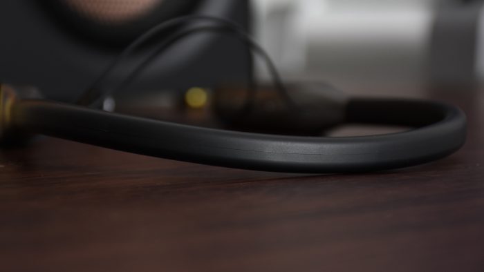 值得一提的是,项圈后方还有凹槽的设计,刚好可以把连接耳塞的线材塞进去,起到隐藏的作用。