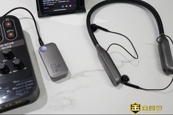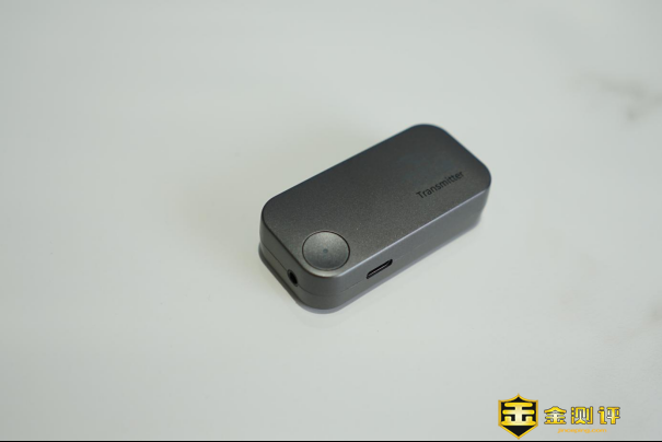 无线发射器采用了类金属质感的电源、配对二合一按键,印有品牌的logo,做工非常扎实给人很好的印象,Type C充电接口在后方侧边。