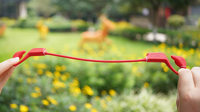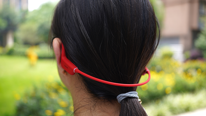 骨传导相比传统耳机有很多优势,特别是在面向运动使用场景时。首先是不入耳的设计,能够在一定程度上保证听力健康,并且没有把耳道封住,可以在欣赏音乐的同时感知周围环境,这一点对公路慢跑爱好者特别有用,关键时刻可以保命。当然了,不入耳的设计,也能够在欣赏音乐的同时正常交谈。