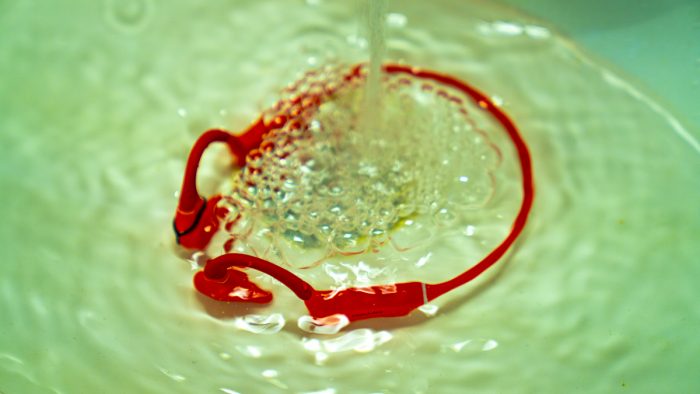 不过,为了更好地保护麦克风,建议在水下场景中使用时配合赠送的麦克风保护罩使用。只需将保护塞套在右侧耳机,并将另一端塞头塞进耳机麦克风口并压紧。