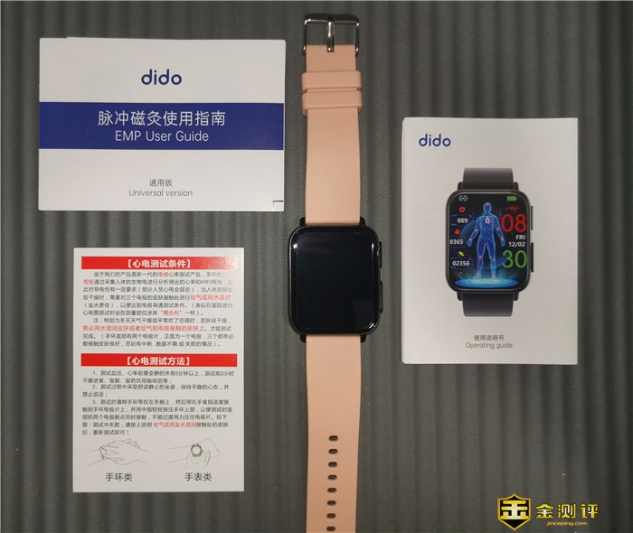 盒内除了手表本体外,随机还附送有使用说明书、一张心电测试指导卡、一本脉冲磁灸使用指南,还有一根充电线。脉冲磁灸使用指南有何作用,后面会详细说明。