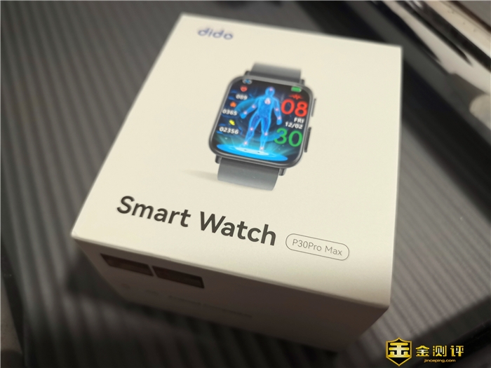 dido P30 Pro轻体智能手表的包装是典型的智能手表型,正面是产品的渲染图,以及产品logo和型号,简洁直观。