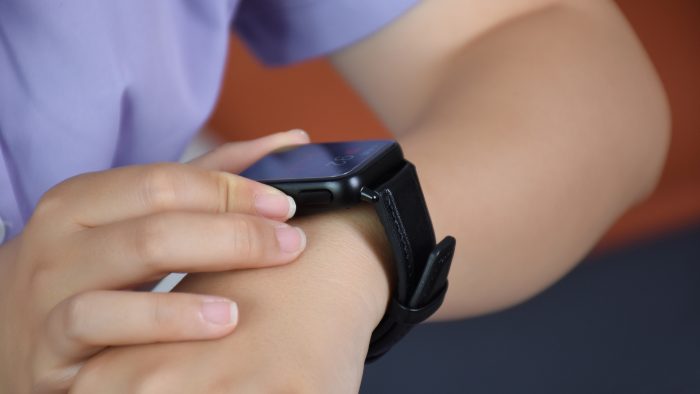 标配的腕带有硅胶和皮革两种材质,我选的是黑色皮革材质,既显庄重又不老气。不过,皮革材质的腕带采用双面拼接处理,表面是皮革,内侧还是硅胶材质,舒适度和透气性比较好。腕带采用快拆式的设计,后期也可以自行购买其他表带更换。