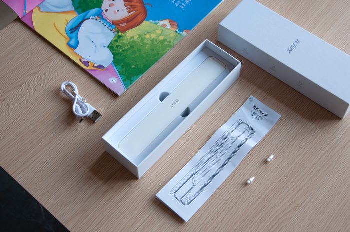 全家福:电容笔一支,充电仓一个,Type-C充电线一根,替换笔尖两个,使用说明书一份。