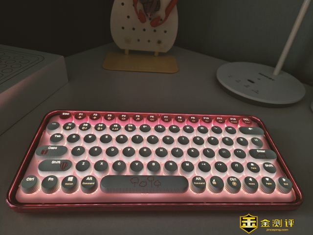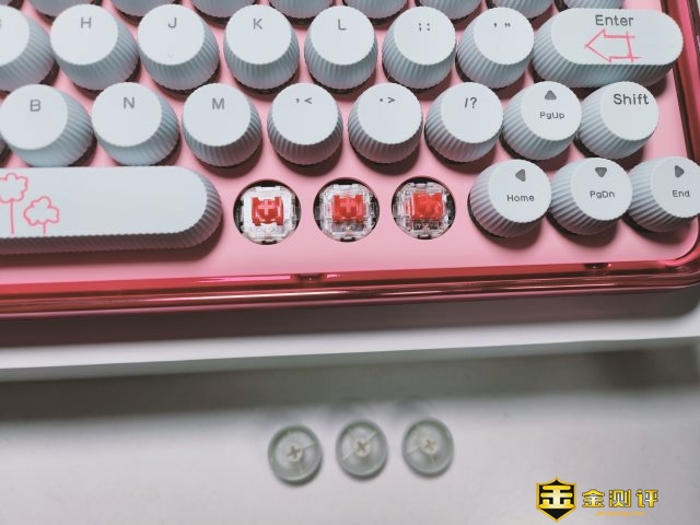 还有整排的功能键,粉粉嫩嫩的原型键帽,感觉就是一朵朵绽放的玫瑰花。esxc键上的爱心,红彤彤的充满了心跳的喜悦。