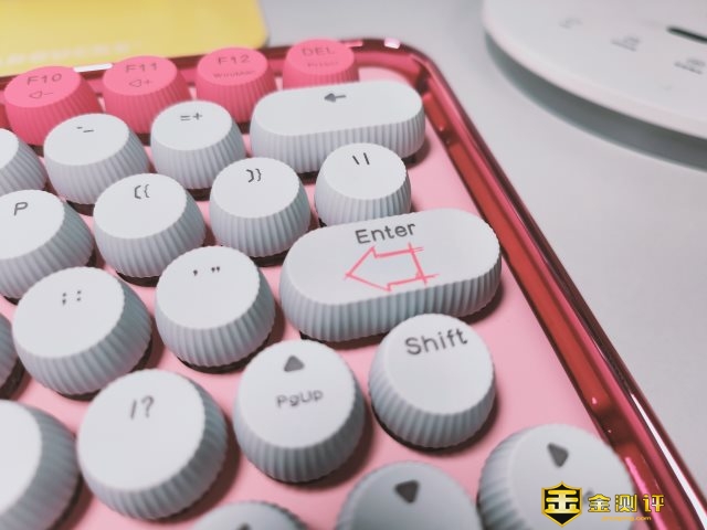 键盘上处处都是细节设计,粉色植入的恰到好处。比如回车键的粉色箭头,有点潦草的绘画感。