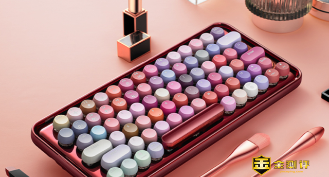 金属边框的设计,自带光面,高出键盘,有一种炫酷感。虽然没有磨砂圣诞款感觉有质感,但是光泽感是满分的。侧面看,小蘑菇一样的键帽纹路可真是太美丽了有木有?