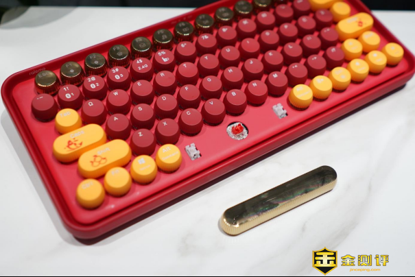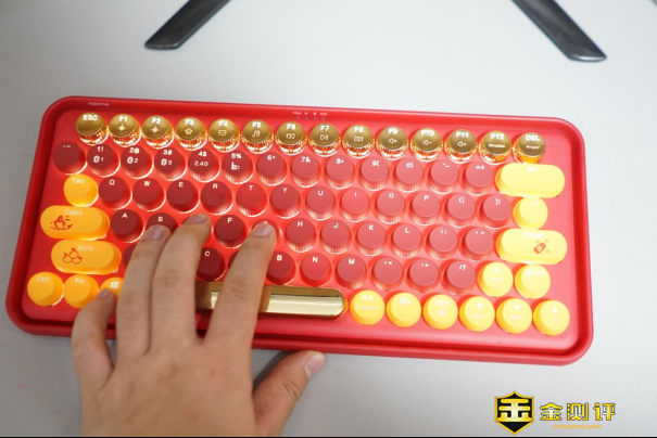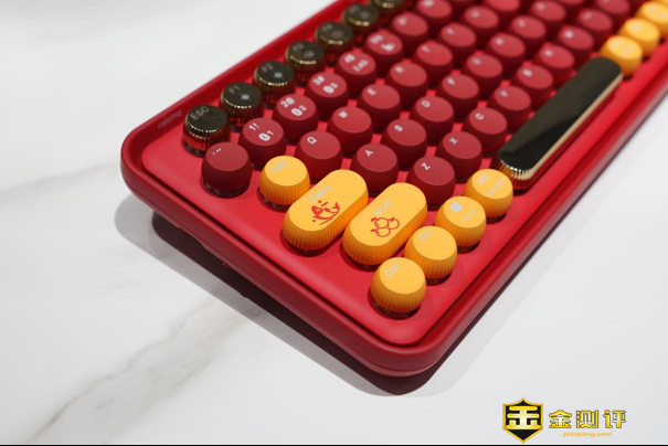 这款雷柏ralemo Pre5多模无线机械键盘有五种配色可以选择,我入手的是流金岁月款红轴版机械键盘。键帽造型采用复古圆形设计,大大提升了颜值。
