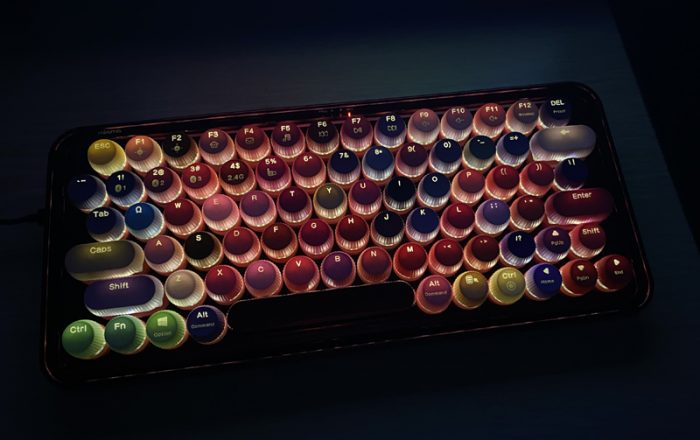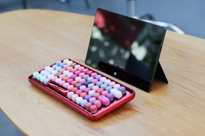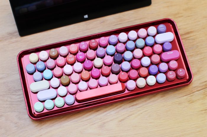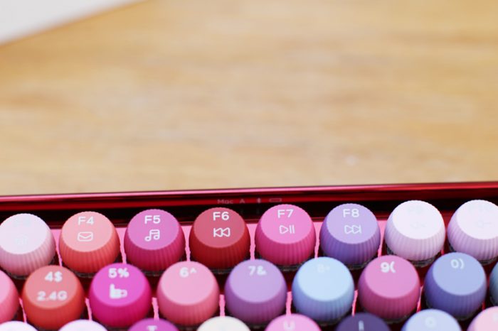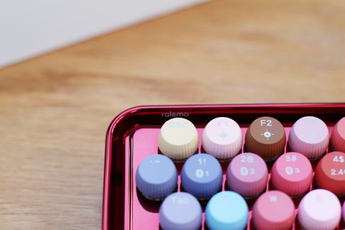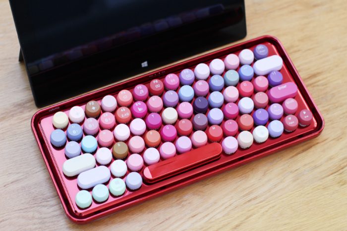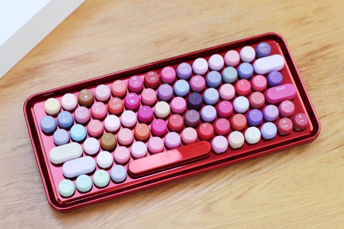 对于这款键盘,我的第一印象就是“这是口红架还是键盘”?貌似各种色号一应俱全……加上这大红色的键盘底架,放在哪里都会吸引人的目光。