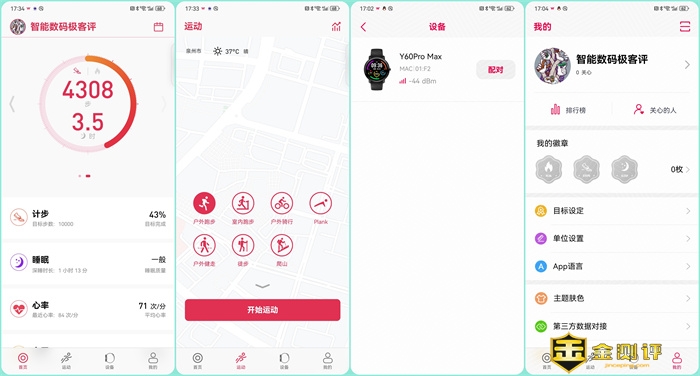 刚刚有提到,dido Y60Pro Max采用全屏触摸+单按键操控设计,这颗按键在表侧面,系统操作的逻辑还算是简便易学。首次开机,长按表盘右侧控制键手表开机后,搭配使用专用App“WOFIT”连接蓝牙就可以绑定手机,进行手表监测数据同步,通过APP进行查看,同时也可以 和手机联动接打电话和查看消息等。