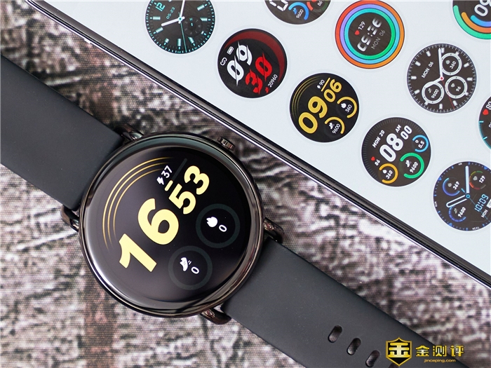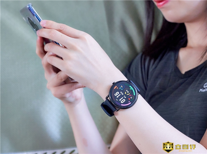 玻璃表盖与屏幕之间采用的是全贴合工艺,AMOLED屏幕效果出众,黑的纯净、黑的彻底,这让屏幕与边框、玻璃都融为一体。玻璃外边缘的倒角弧度顺滑,与表身过度自然。