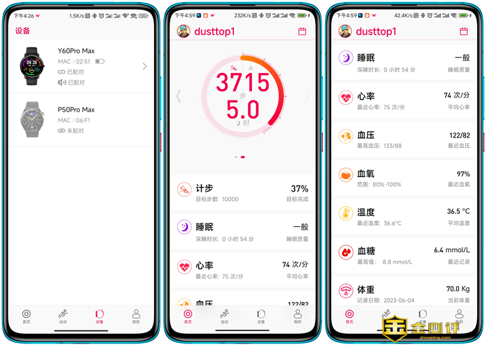 回到dido健康监测的老本行,Y60对于心率、血氧、血压、血糖、睡眠、体温、计步的监测一样不落。通过官方“WoFit”App,可以直观的看到各项数据。