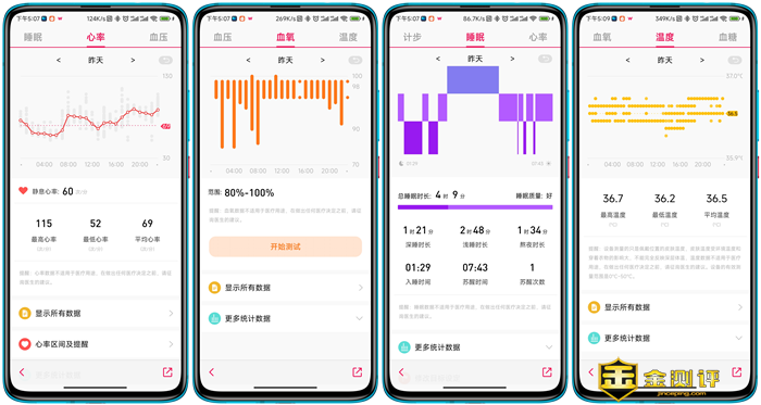 至于心率、血氧、睡眠、体温,这些功能是个手环都能有,这里就不再做单独展示了。续航方面要提出特别表扬,以我个人为例,打开全天健康监测、关闭蓝牙通话、打开翻转亮屏、屏幕亮度50%,一日耗电约为7%,充一次电轻松用10天。